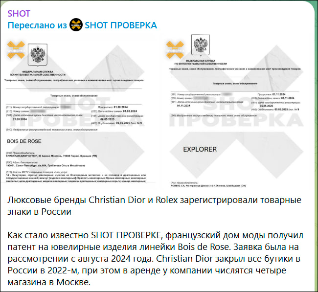 Но сейчас, вот ведь интересная ситуация, французские гиганты Celine, Christian Dior и L'Oreal оформили регистрацию своих товарных знаков в России. Заявки поданы ещё в 2024-2025 годах, а в марте-апреле этого года получили официальное одобрение Роспатента.