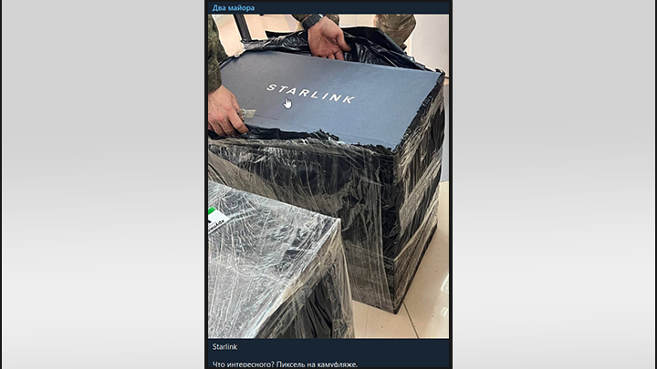 Русские военные стали получать контрабандные "Старлинки" в конце 2023 года; на расстоянии до 20 километров от линии фронта SpaceX не может отличить наши терминалы от украинских. Скриншот: ТГ-канал "Два майора"