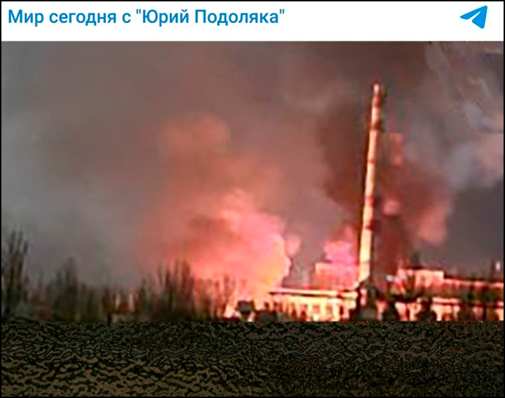 Поражение украинской ТЭЦ. Скриншот с ТГ-канала Юрия Подоляки