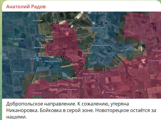 Добропольское направление. К сожалению, утеряна Никаноровка, Бойковка в серой зоне. Новоторецкое остаётся за нашими.