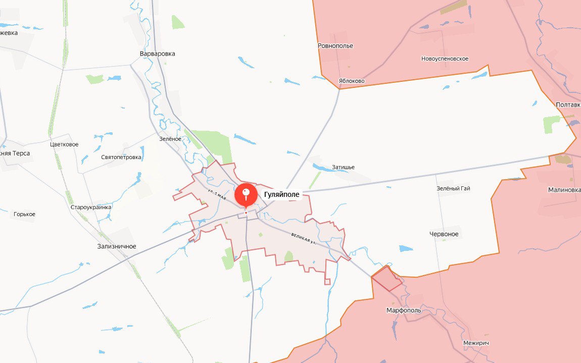 Однако к Гуляйполю русские подразделения заходят не только с севера, но и поджимаются с востока. Подразделениям России удалось зацепиться за окраины Весёлого и Зелёного Гая, а также приблизиться к Червоному.