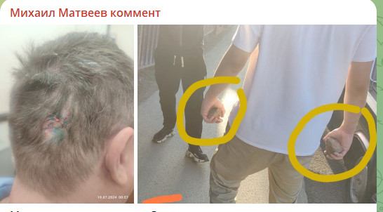 Судя по анализу записи, меня ударил парень, у которого в руках были камни, которые я не заметил. Ударил сразу, несмотря на поднятое мной удостоверение и призыв остановиться. Он несовершеннолетний. Двое других - один гражданин Узбекистана, другой "ценный специалист" - Бохиров, таджик, уже получил гражданство России. И уже тут три судимости, все закончившиеся "применением сторон". Он был в группе старшим.