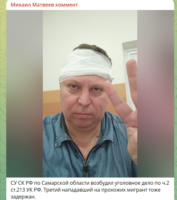 Мигранты, напавшие в Самаре на депутата Госдумы Михаила Матвеева, бить людей начали ещё на пляже. По словам народного избранника, там они напали на пожилого мужчину, отняли мяч, потом ударили водителя маршрутки, затем зашли в магазин и там устроили дебош. "Далее они напали на двух мужчин, свидетелями чего мы стали, и не стали проезжать мимо, вмешались", - рассказал парламентарий.