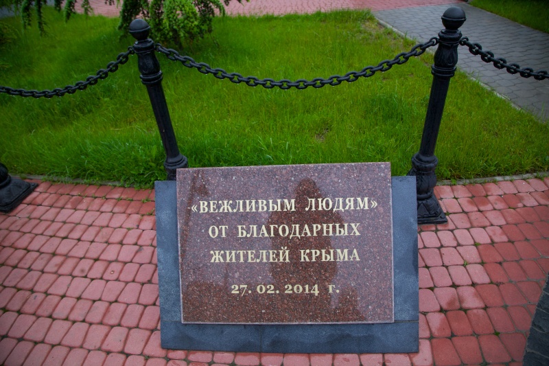 Фото: Мемориальная табличка в Севастополе, надпись гласит "Вежливым людям от благодарных жителей Крыма"; © Aleksander Lyskin / Global Look Press