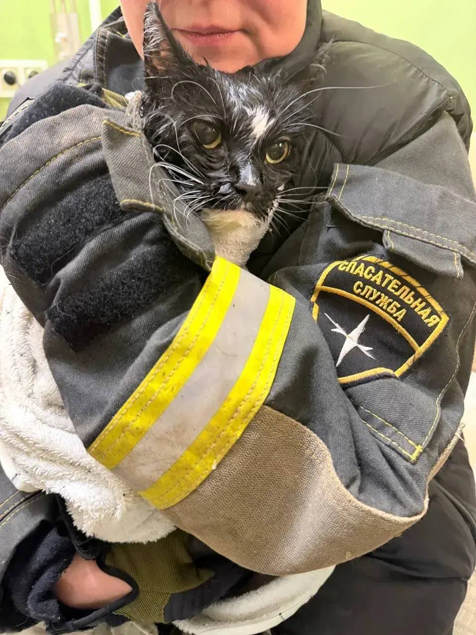 — рассказали в отряде. Кота подсушили полотенцами, и вскоре он пришёл в себя и даже поел.
