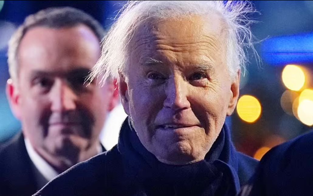 Во время посещения церемонии открытия елки Джо Байден предстал перед участниками в шокирующем виде из-за порыва ветра, который растрепал волосы президента США.