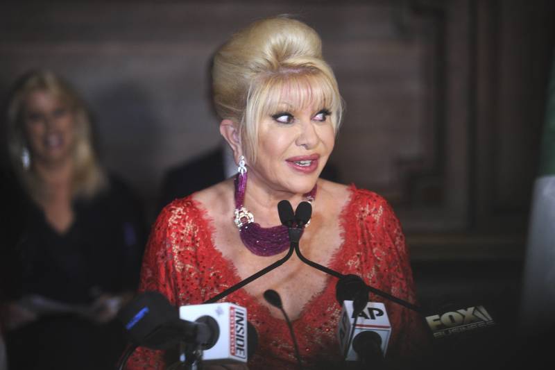 Вместе с друзьями она ждала свободный столик. Тут к ней подошёл высокий блондин с голубыми глазами. Он вежливо представился: "Я Дональд Трамп. Похоже, вы ищете столик — могу помочь". Ивана, бросив взгляд на друзей, пошутила, что они быстро найдут место, но этот настойчивый джентльмен сядет с ними.